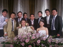 | チームメートとともに記念撮影 | おめでとう!いつまでもお幸せに |